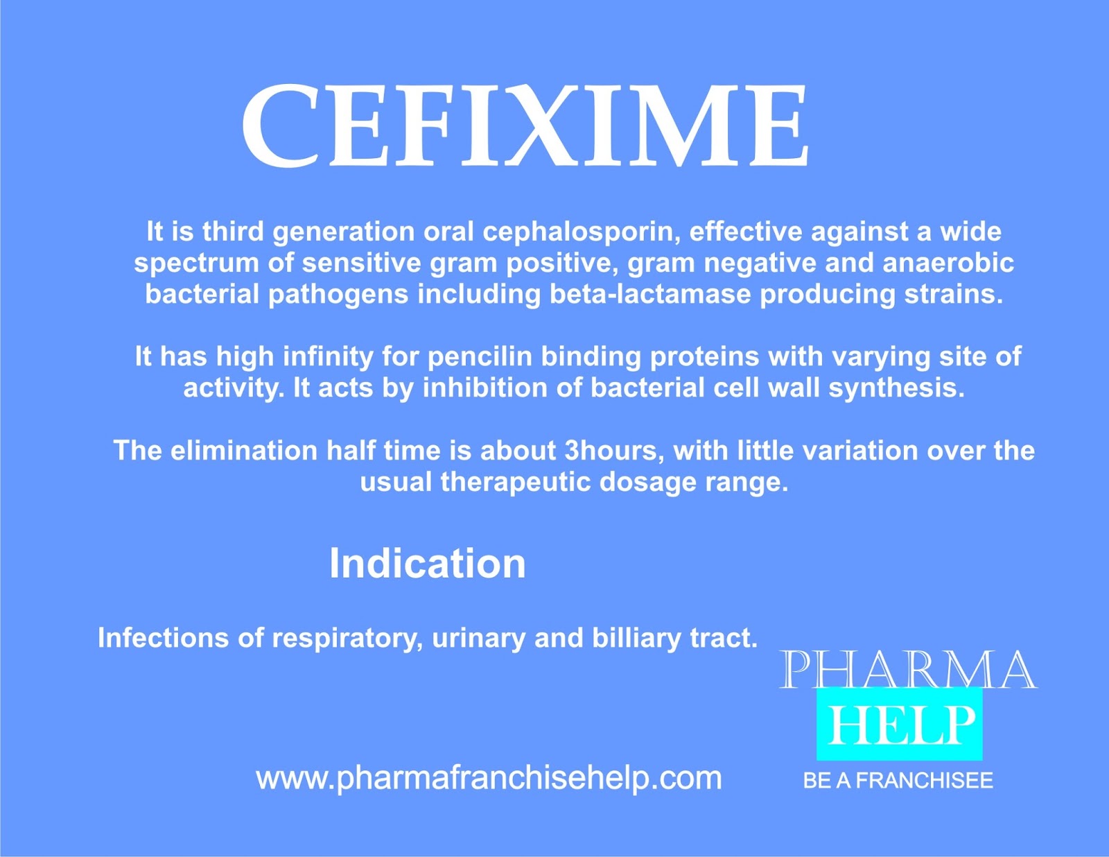 It is third generation oral cephalosporin, effective against a wide spectrum of sensitive gram positive, gram negative and anaerobic bacterial pathogens including beta-lactamase producing strains.